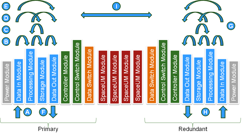 The data plane incorporates high-speed multigigabit fabric connections between modules to carry payload and mission data.